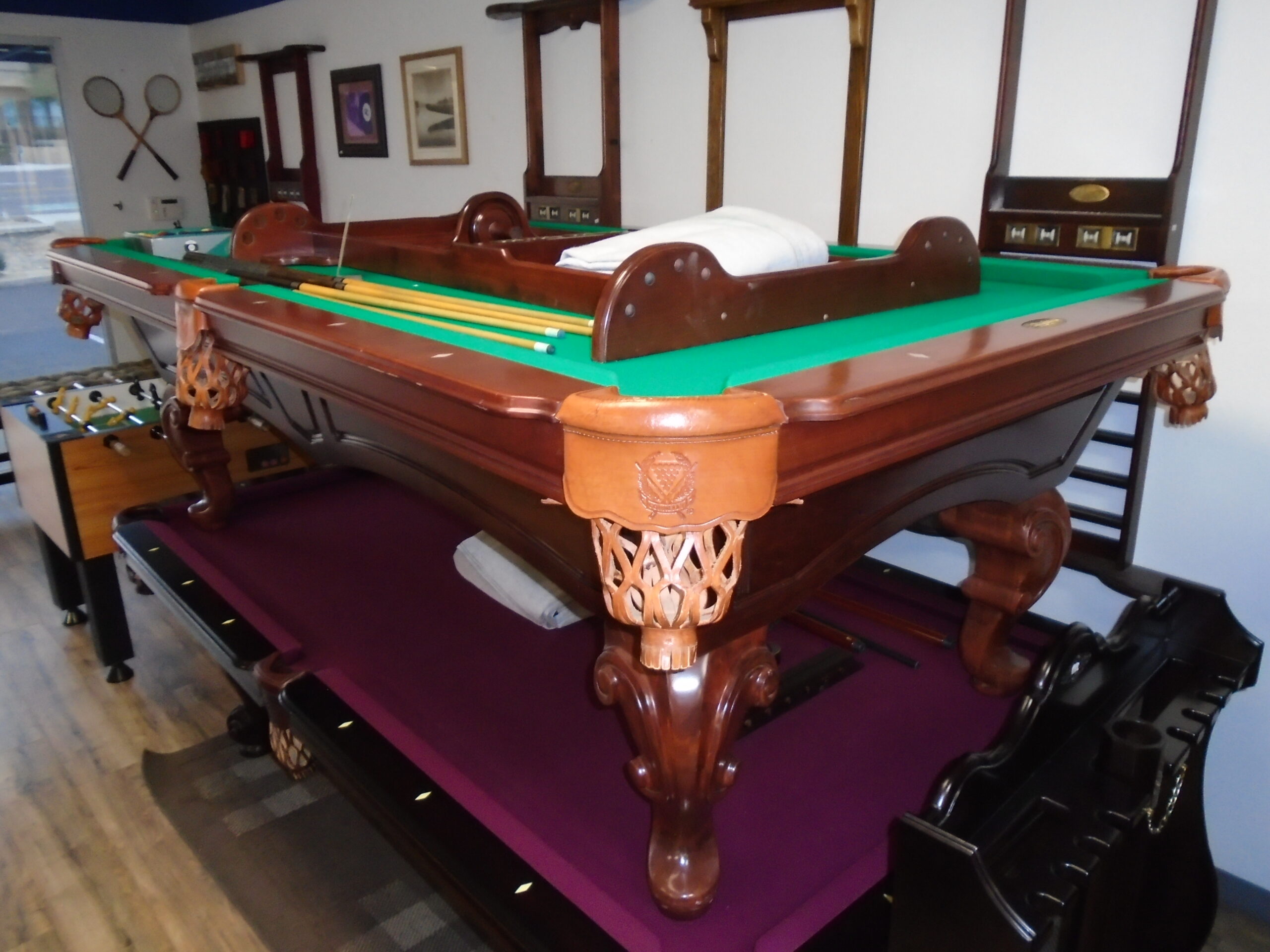 All used pool tables sold at Beck’s come with a 5 year parts and labor warranty on the slate, pockets, and cushion rubber.