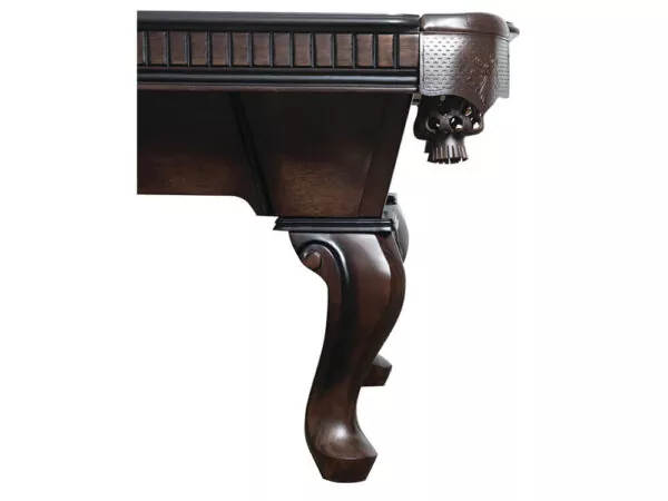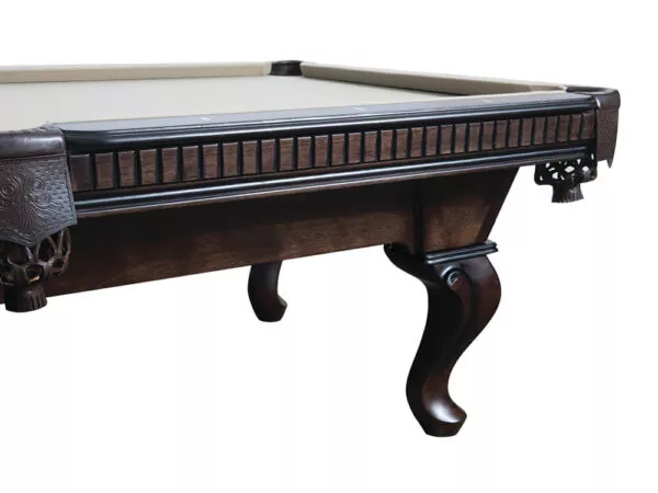 The Cleveland billiards table is a classic-styled pool table with an arched cabinet and a choice of Ball and Claw or Queen Anne legs. The smokey gray walnut finish gives this table a traditional feel and will be a great addition to any home. *photographed with Queen Anne leg